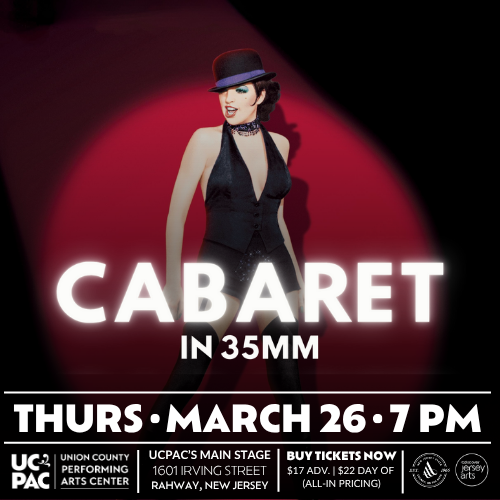 <p><span><span>What good is sitting alone in your room? Come to "Cabaret," the best movie musical of all time (Forbes) at UCPAC's Main Stage! </span></span></p><p><span><span><br>See this 35mm screening of the 1972 classic film that won eight Academy Awards, including Best Director (Bob Fosse), Best Actress (Liza Minnelli as Sally Bowles), and Best Supporting Actor (Joel Grey as the Master of Ceremonies).<br><br>Set in Germany in 1931, "Cabaret" tells the story of Bowles, an American singer performing at Berlin's glittering Kit Kat Klub while the world outside grows increasingly bleak with the rise of the Nazi regime. With dazzling music and unforgettable performances, "Cabaret" portrays how entertainment can be an escape, if only momentarily, even in the darkest of times.<br><br>Enjoy a cocktail and a Kit Kat Klub photo op in the UCPAC lobby. Come in costume as your favorite showgirl or the MC, or come as you are; in here, life is beautiful, and so are you.</span></span></p>