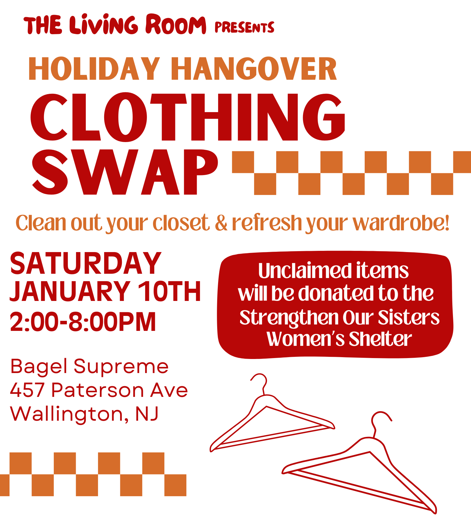 <p><span style="color: rgb(230, 232, 240)"><span>Welcome to our clothing swap! Where we aim to reduce landfill waste, save money, and build community around sustainable fashion.</span></span></p><p>How does it work?</p><p>· <span>Bring clean,</span><strong><span> </span></strong><span>gently used items that you’re ready to part with – clothes, shoes, jewelry.</span></p><p>· For $10 you will receive a reusable bag, that's where the fun begins. </p><p style="text-align: left"><span>· Take anything that suits you - for $10 flat you can fill your bag with clothes you love that are new to you! </span></p>