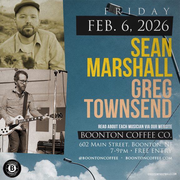 <p>Immerse yourself in an evening of soulful melodies and heartfelt lyrics at the <strong>First Friday Songwriter Series</strong>. This February, as we celebrate Women’s History Month, join us at <strong>Boonton Coffee Co.</strong> for a night featuring the incredible talents of <strong>Sean Marshall</strong> and <strong>Greg Townsend</strong>.</p>