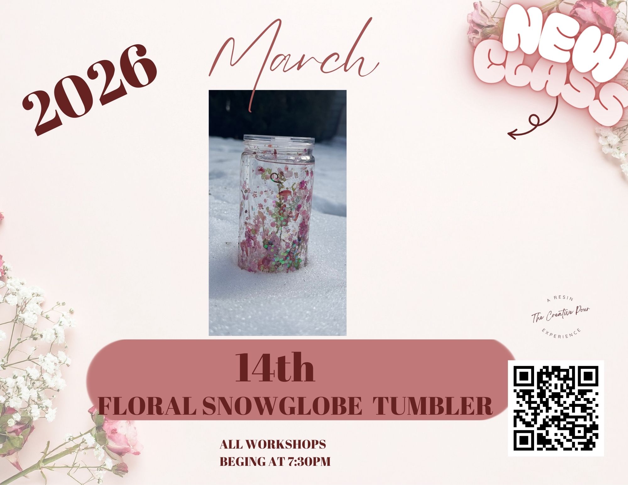 <h3>šø Floral Snow Globe Tumbler Workshop (16oz)</h3><p>Create your own one-of-a-kind floral snow globe tumbler in this hands-on creative experience!</p><p>In this workshop, youāll design a beautiful <strong>16oz clear tumbler</strong> using <strong>real pressed flowers, glitters, and decorative elements</strong>, then transform it into a magical snow globeāstyle cup with floating sparkle and floral details. Once finished, your tumbler will have that signature <em>snow globe effect</em>, gentle shimmer and movement every time you give it a shake.</p><p>Youāll be guided step-by-step through the entire process, from arranging your florals to sealing your tumbler for a polished, professional finish. No experience needed, just come ready to create, relax, and have fun.</p><p>⨠All materials included<br>⨠Choose from curated pressed florals + glitters<br>⨠Take home your finished 16oz snow globe tumbler<br>⨠Perfect for girlsā nights, birthdays, bridal events, or just a creative self-care moment</p><p>Expect cozy vibes, creativity, and a keepsake youāll actually use.</p>