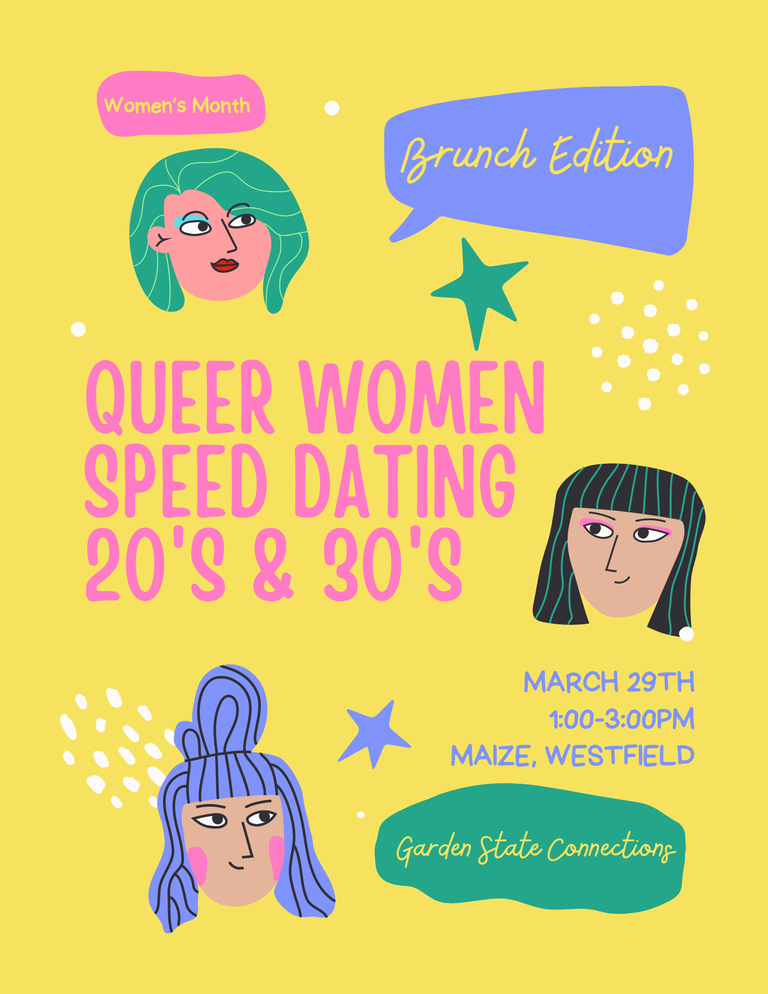 <h2><strong><span>Overview</span></strong></h2><p><span>Get ready to mix, mingle, and maybe find your match at our speed dating event tailored for queer women in their 20s and 30s!</span></p><p><span>Join us for a vibrant </span><strong><span>speed dating night </span></strong><span>just for queer women in their 20s & 30s at Maize in Westfield!</span></p><p><span>This fun, fast-paced evening is all about creating genuine connections face-to-face—no apps, no endless swiping, just real conversations in a safe, welcoming space.</span></p><p><span>You’ll meet a variety of local queer women through quick, engaging rounds of </span><strong><span>5–7 minute mini-dates</span></strong><span>. Each time the bell rings, you’ll rotate and meet someone new—no pressure, just a chance to see if sparks fly. At the end of the night, simply hand in your match card, and if there’s a mutual connection, we’ll let you know the very next day!</span></p><p><span>Whether you’re looking for love, friendship, or simply a fun night out with amazing queer women, this event is about </span><strong><span>building connections that matter.</span></strong></p><p><span></span><strong><span>How It Works</span></strong></p><ul><li><p><span>Reserve your ticket early (space is limited!)</span></p></li><li><p><span>Arrive 15 minutes before the event for check-in with our host</span></p></li><li><p><span>Participants rotate at the sound of the bell to meet someone new</span></p></li><li><p><span>Each round lasts 5–7 minutes—just enough to break the ice!</span></p></li><li><p><span>Use our match card to jot down notes about each date</span></p></li><li><p><span>Hand in your match card at the end of the night</span></p></li><li><p><span>Receive your matches by email the next day</span></p></li></ul><p><span>It’s easy, engaging, and one of the best ways to experience offline dating in New Jersey.</span></p><p><span></span></p><p><span></span><strong><span>The Venue</span></strong></p><p><span>📍 </span><strong><span>Maize Cocina & Cocktails</span></strong></p><p><span>301 N Ave W, Westfield, NJ 07090</span></p><p><span></span></p><p><span></span><strong><span>The Host</span></strong></p><p><span>🌟 </span><strong><span>Garden State Connections</span></strong><span><br></span><a target="_blank" rel="noopener noreferrer nofollow" href="https://linktr.ee/gsconnections"><span>https://linktr.ee/gsconnections</span></a></p>