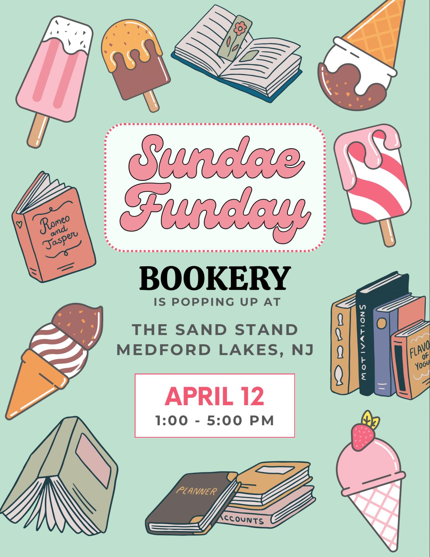 <p><span style="color: rgb(8, 8, 9)"><span>Sundae Funday just got even sweeter! </span></span><span><br><br></span><span style="color: rgb(8, 8, 9)"><span>Join Bookery for a pop-up with The Sand Stand on Sunday, April 12 from 1–5 PM!</span></span><span><br><br></span><span style="color: rgb(8, 8, 9)"><span>Come grab some ice cream, browse a curated selection of books, and enjoy the perfect sweet + cozy combo. We’ll be set up outside (weather permitting)!</span></span></p><p><strong>The Sand Stand</strong><br><span style="color: rgb(8, 8, 9)">1 Trading Post Way, Medford Lakes, NJ 08055</span></p><p><span><br></span></p>